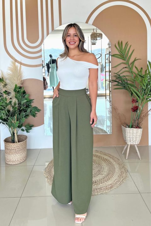 TOP LAZO MARFIL + PALAZZO VERDE